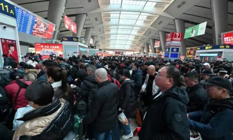 شهدت محطات القطارات والمطارات في مختلف أنحاء الصين السبت ذروة في عدد المسافرين مع اقتراب الاحتفالات بالعام القمري الجديد، إذ عاد ملايين الأشخاص إلى منازلهم لتمضية العطلة مع عائلاتهم، في عملية تنقّل سنوية يُتوقّع أن تكون قياسية هذا العام.
