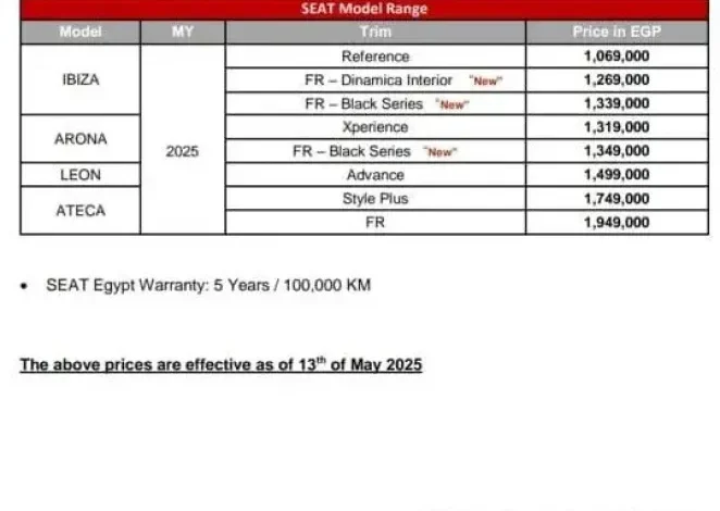 أسعار سيارات سيات 2025 بتخفيضات حتى 126 ألف جنيه