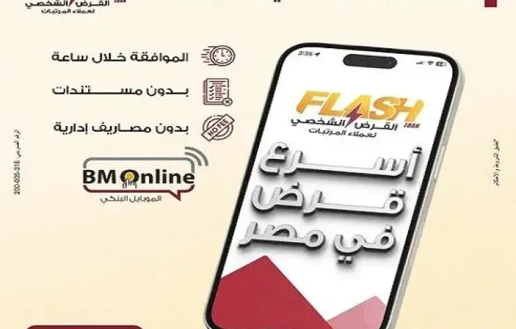 أعلن بنك مصر عن طرح القرض الرقمي “فلاش” لعملاء المرتبات بدون تقديم مستندات أو مصاريف إدارية والموافقة خلال ساعة.